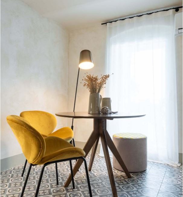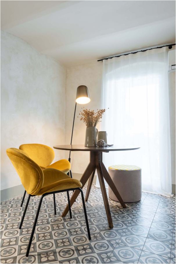 Casa Ettore, ristrutturato dall’ingegner Nicola Bux, è un appartamento situato in un palazzo dell’800 e combina armoniosamente elementi storici, come le voltine con travi metalliche e il pavimento ispirato alle cementine antiche, con un design contemporaneo. Il pavimento e il backsplash della cucina conferiscono all’appartamento un affascinante tocco retrò, mentre l’arredo moderno è in linea con i comfort contemporanei. Le piastrelle del bagno posate a spina di pesce creano giochi di luce grazie alla loro finitura glossy e al colore blu avio, richiamando l’idea di una “stanza dell’acqua”.