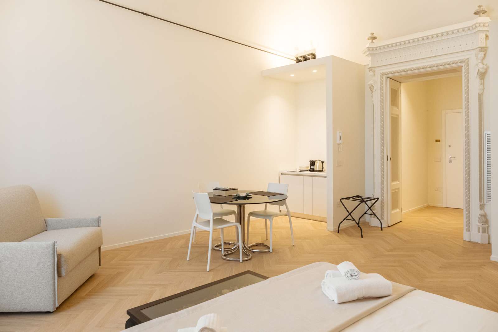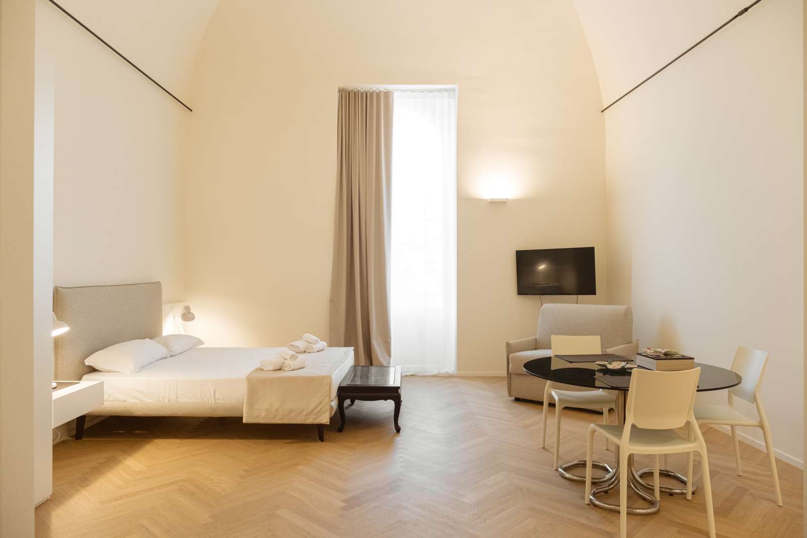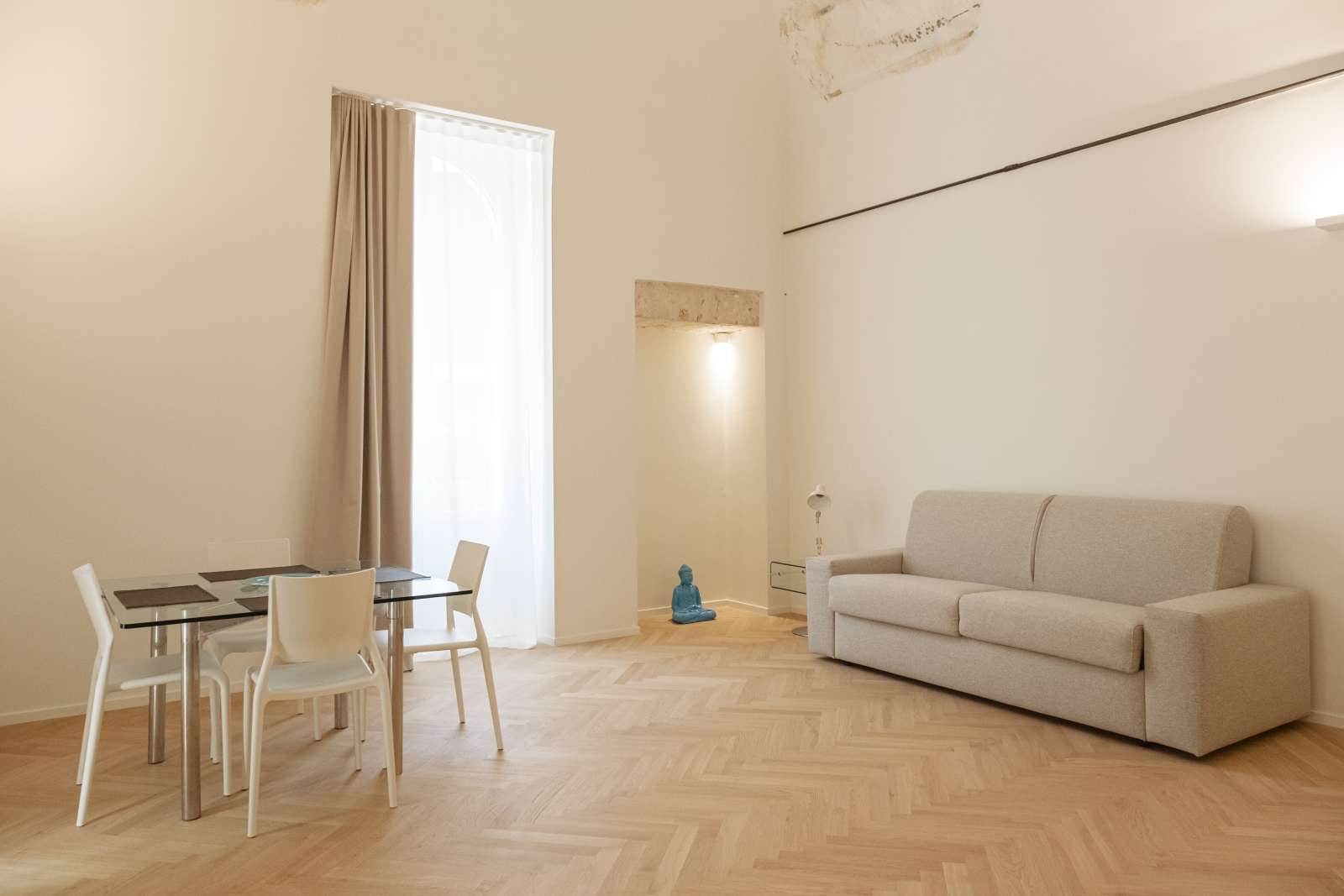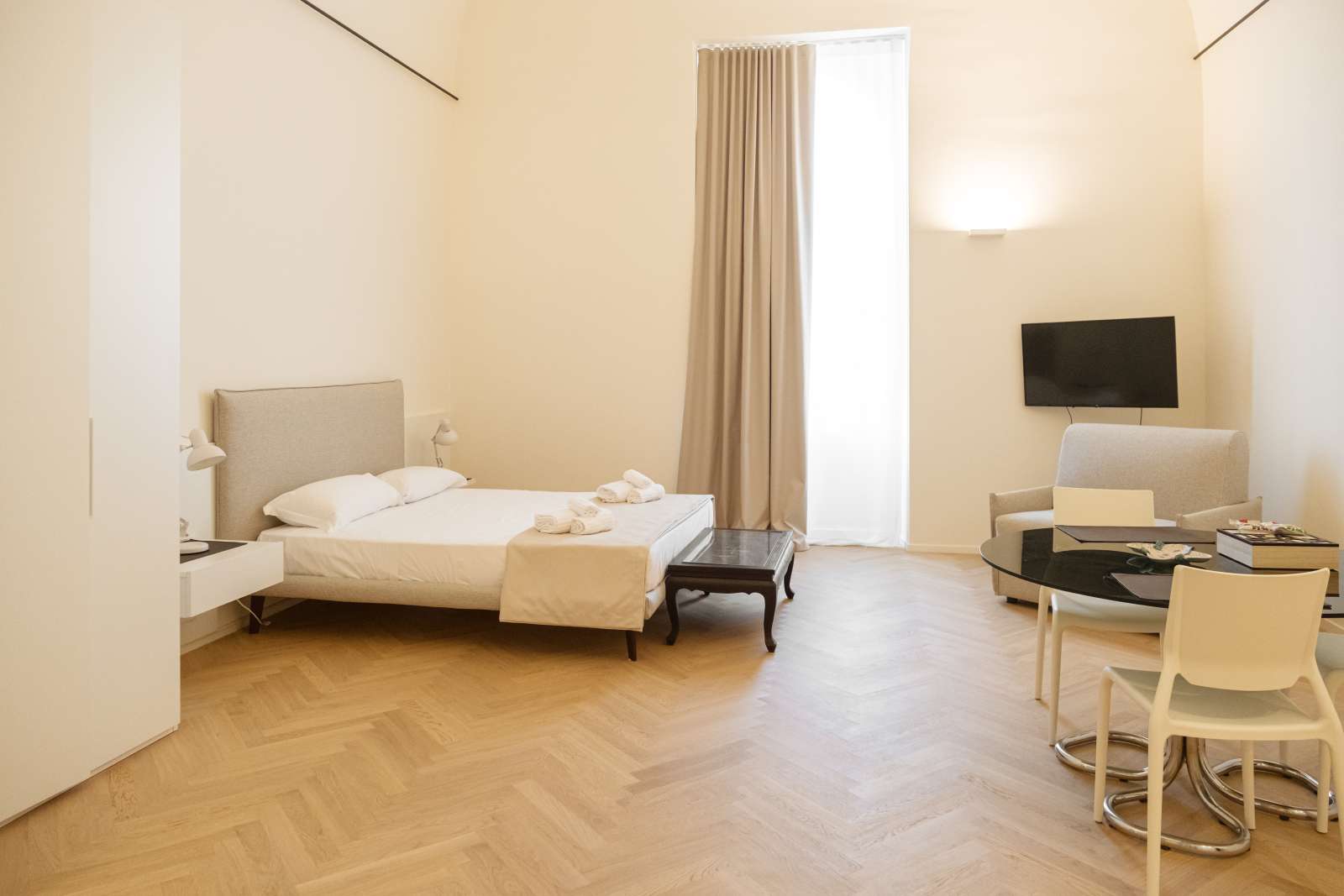 Dodici stanze in cui passato e presente si incontrano tra colori tenui, parquet e dettagli ricercati.